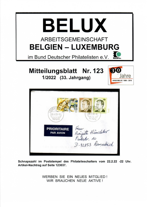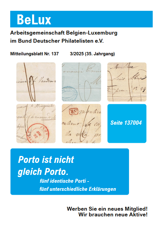 Die Mitteilungsblätter der ArGe BeLux erscheinen zum Jahr 2025 dreimal pro Jahr mit einem Umfang von mind. 48 Seiten.